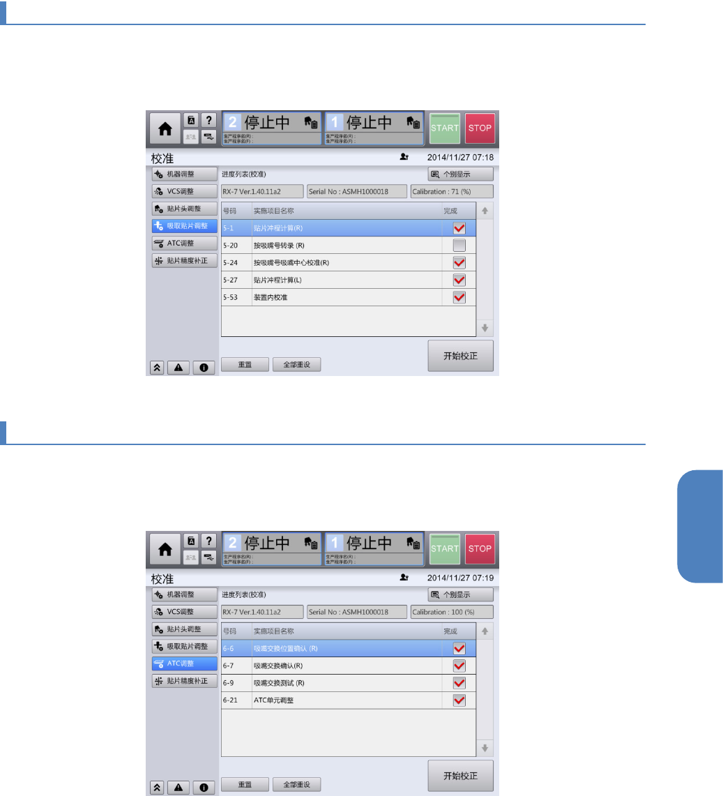 在[ATC 调整]画面中,可对本机的贴片头进行相关的校准。