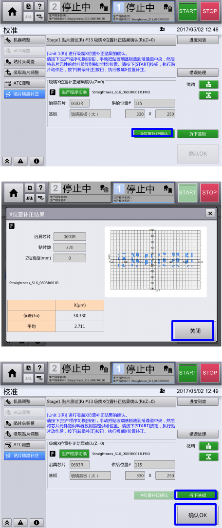 吸嘴 X 位置补正的结果,可以在 [履历]