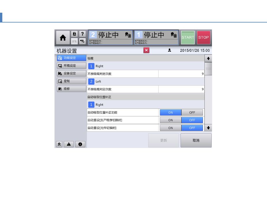 当标准吸嘴或定制吸嘴发生了变更时以红字显示。