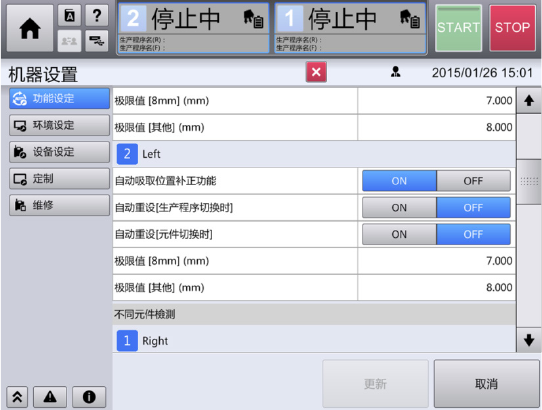 插拔供料器时,与本设定无关,将进行重设。
