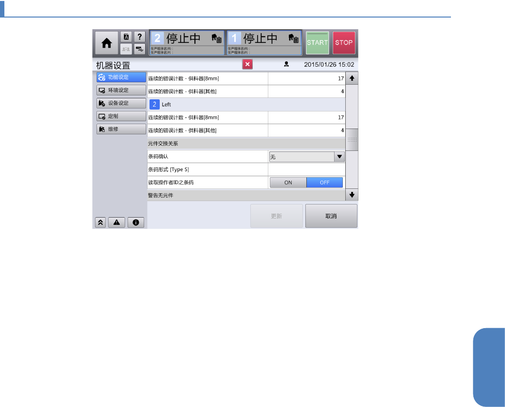 指定为 ON 后,进行元件更换时,要使用条形码阅读器读取操作者 ID。操作者 ID 将被记录在操作履