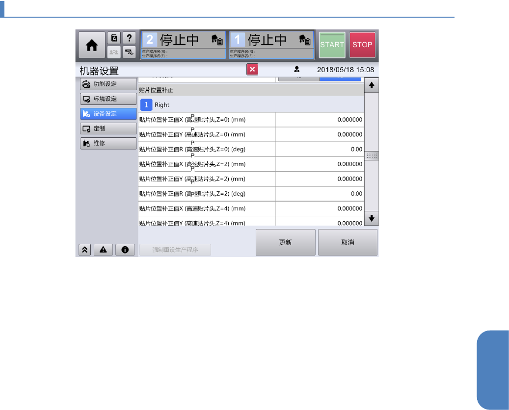 高速贴片头(P16/P16S)的贴片位置 X、Y、R 有整体移动的倾向时,在补正方向输入偏移量,提高贴