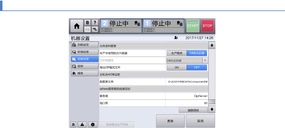 将设定从[DB 在此机器]变更为[生产程序],根据装置内 DB 的元件数据,更新 D:\asm\PwbData 以下的