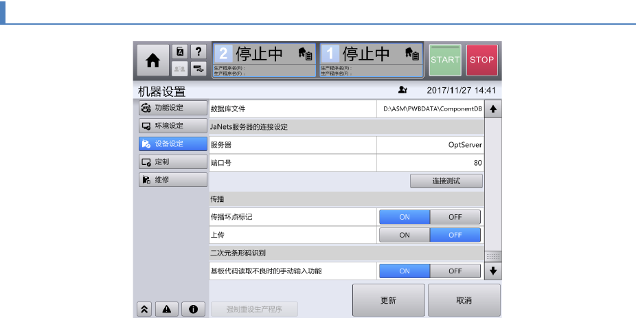 设定发生变更时,在执行更新后才能进行连接测试。