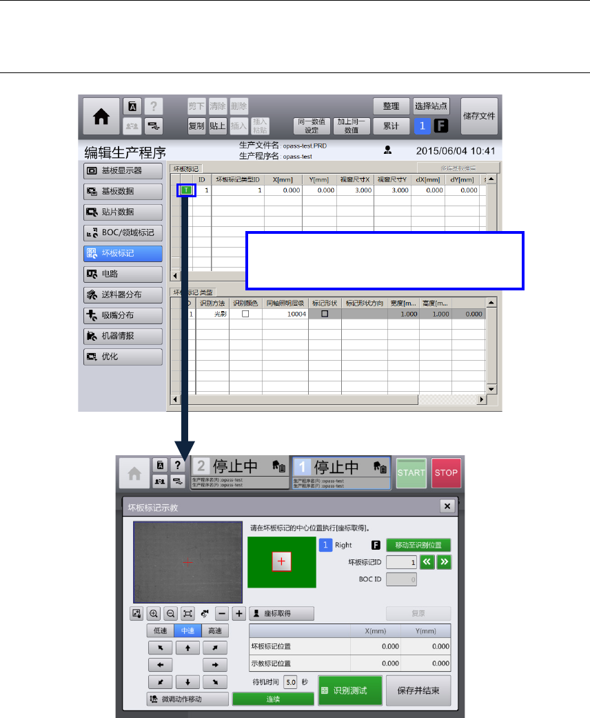 从[编辑生产程序] – [坏板标记] 画面触摸要进行坏板标记识别位置示教的坏板标记的 [T] 按钮,即显