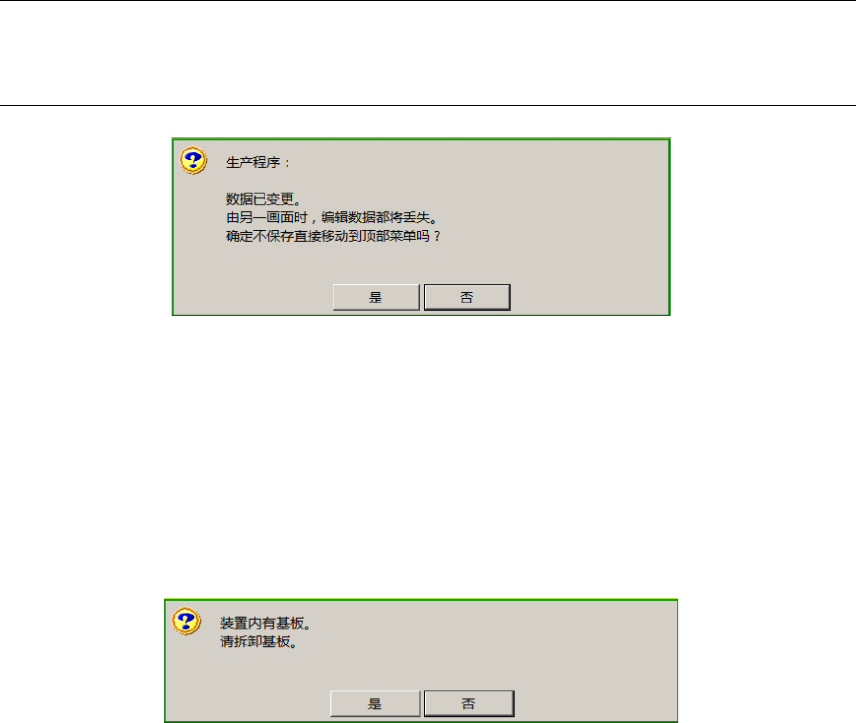 触摸[否] 按钮,则强制显示 [顶部菜单] 画面。如果要将基板取出,需再次返回 [编辑生产程序] 画面,