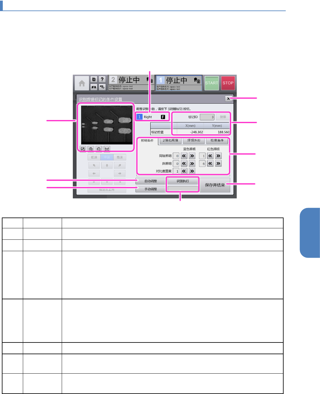 保存并结束 对编辑焊锡识别条件后的值进行确定。