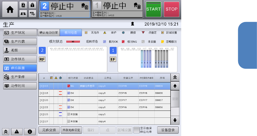 为核对 NG。如果在贴片机启动时已超过使用期限的 MSD 元件已被装载,会在已装载的状态下启动,