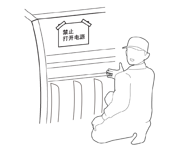检查中在未接通电源的状态下作业时,请在电源开关前放置注意标示后,进行检查作业。