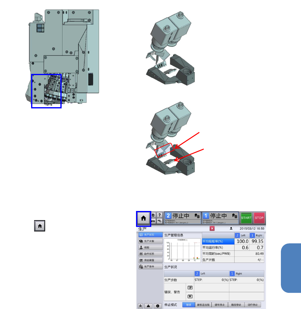 台车上升,贴片头向身前移动。