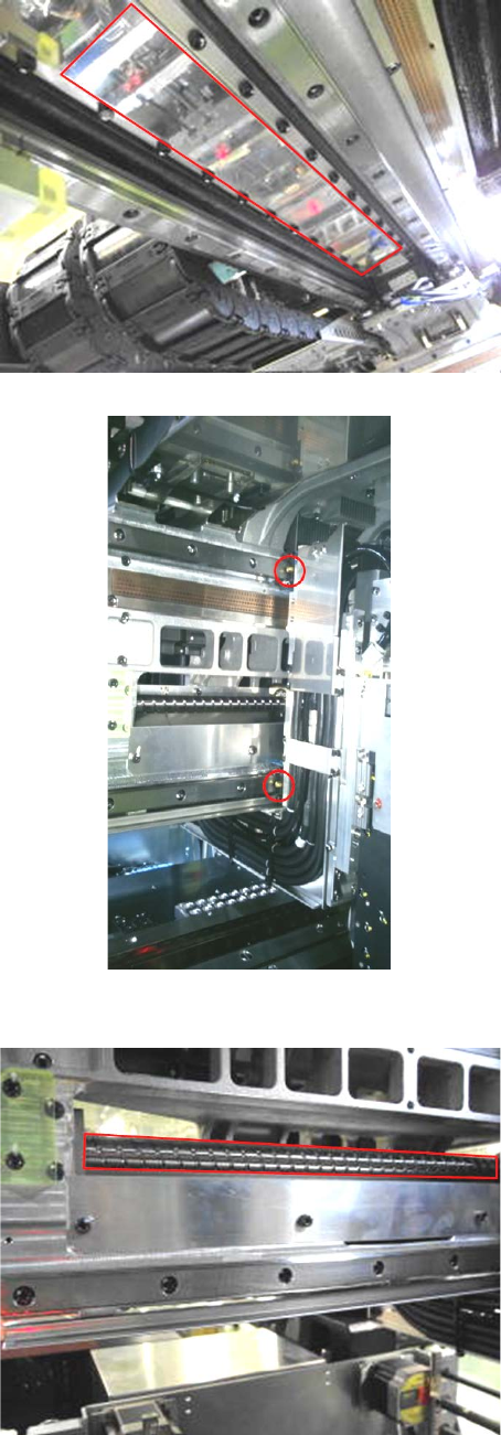 要点: 因为成为油脂下落的原因,所以请擦去在露出来的油脂以及 LM 导游固定的螺丝的洞孔进入的油