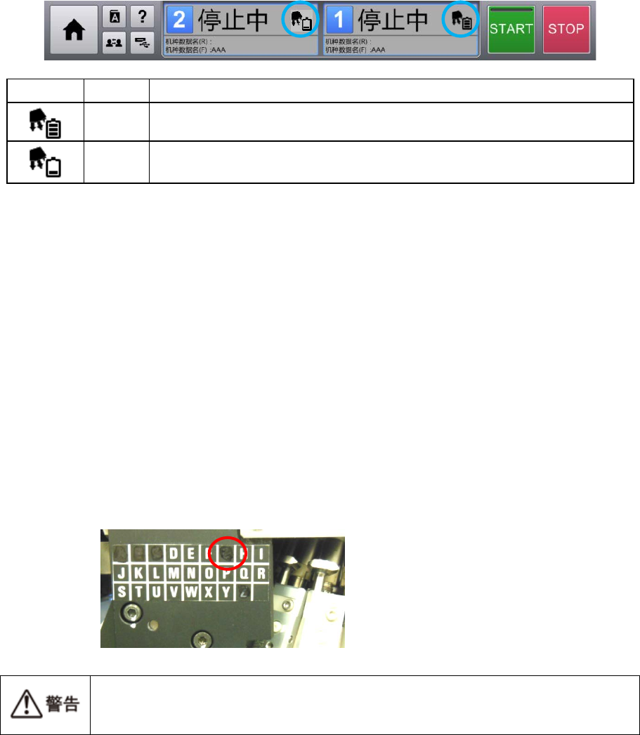 当电池量降到规定值以下时,机器操作画面上将显示警告。