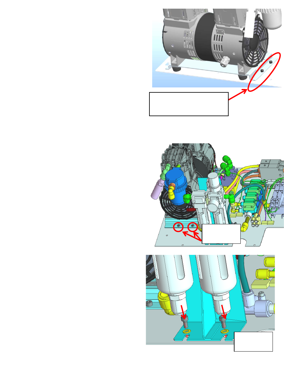 第 5 章 维护篇 5- 2. 保养检查 64 5 .安装真空泵 1. 将 真空泵附着的金属板固定在真空泵支撑架 上。 ※需使用固定真 空泵金属板的 螺丝 2 .接上连接 器。 6. 安装气源处理器 < RX-7 > 1. 将固定真空 泵金属板 的、扣住 金属板 的 2 处 螺丝拧紧。 2. 在 2 处用螺丝固 定 支 架。 7. 安装护盖 1. 请拧紧 6 处的螺 丝,固定左右 的护盖。 2. 请打开 机器 的 电源, 确认从 真空泵…