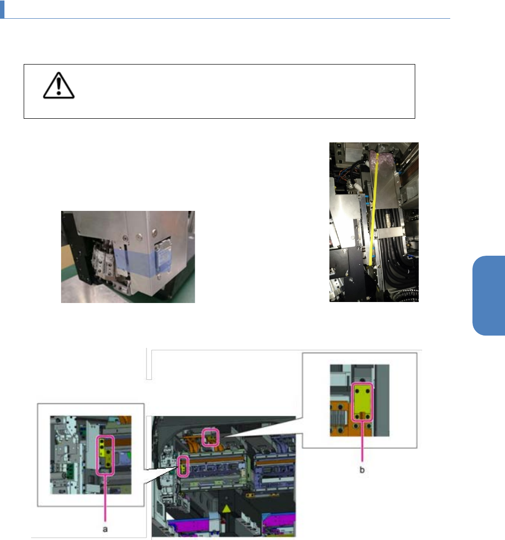 按下图所示,按住 X 轴框架(铸件)、Z 轴框架的电缆固定板金,使之移动。