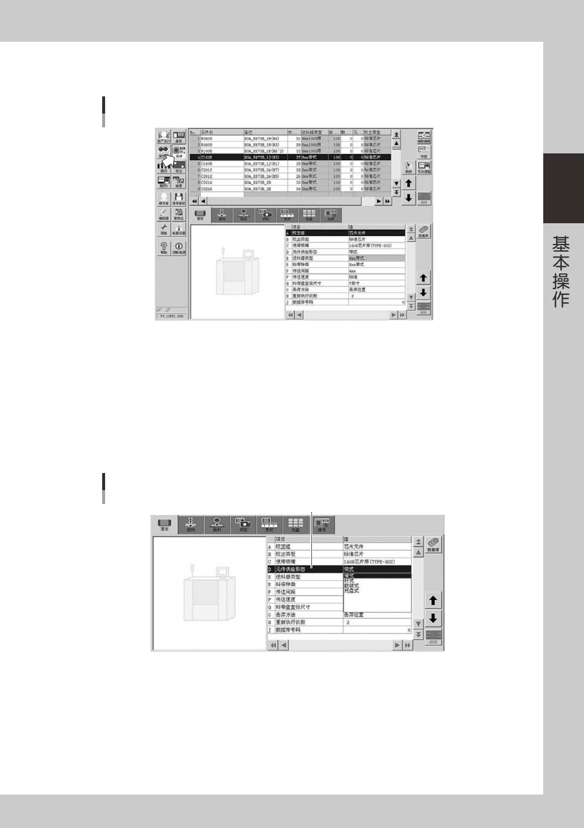 如果更改了元件供给形态,料带种类也会随之改变,需重新设置。