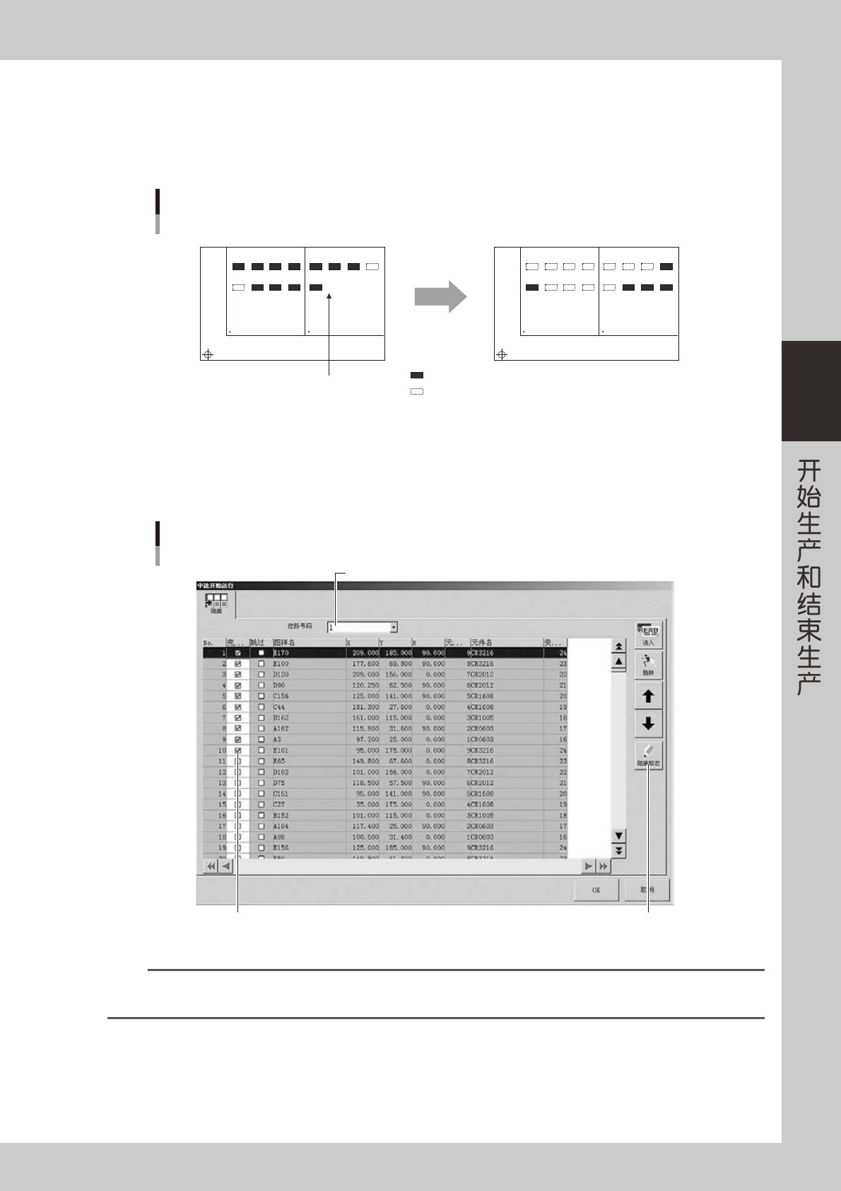 按钮读入数据后,用 [ 贴装标志 ] 按钮修改各贴装点的「完成贴装」。