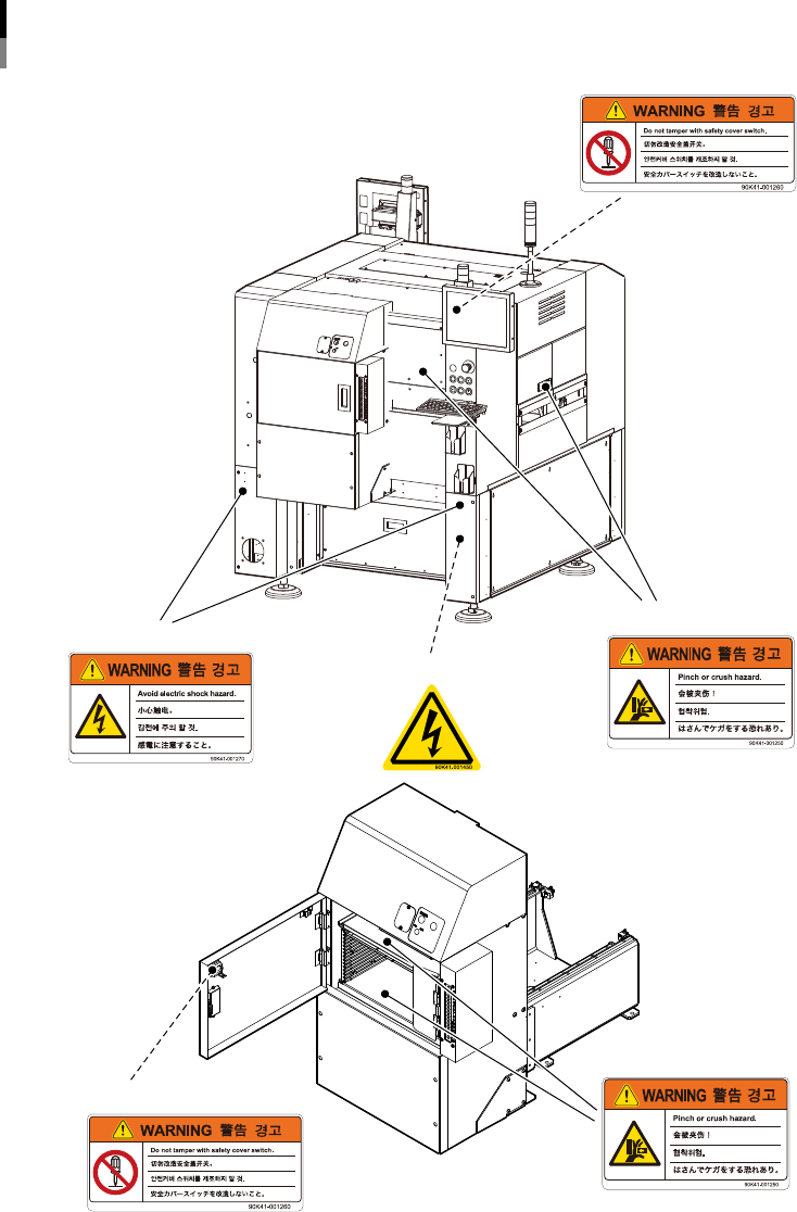 ■ 标贴张贴位置 警告标贴 ATS15 (YS12F) ■ 柜门开口部 ■ 开关安全盖内部 ■ 开关安全盖、传送部开口部 ■ 下部面板部 ■ 开关柜门内侧 ■ 面板内部 95203-L7-20