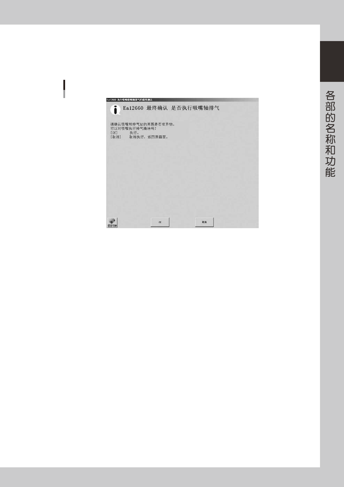 显示「确认 是否执行吸嘴轴排气」对话框。