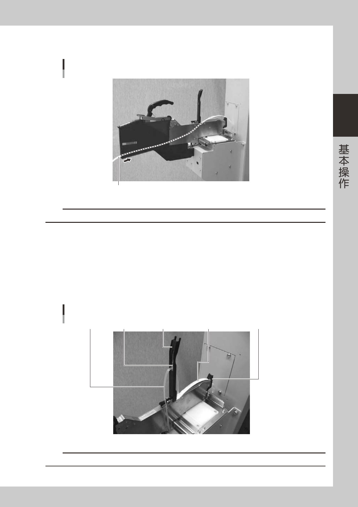 将盖带穿过料带导轨组件的切口部。此时,盖带必须拉出一定程度,使盖带可以夹入卷绕滚轮。