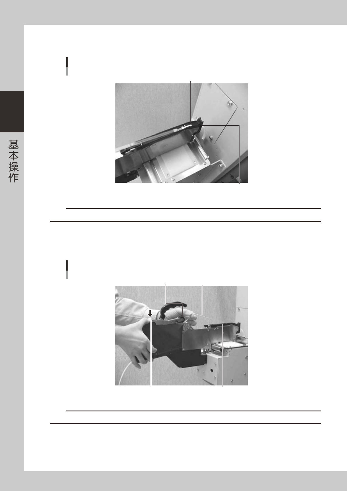 按压卷绕滚轮杆的图中所示部分,使卷绕滚轮让出间隙,将盖带插入此间隙并拉伸一定长度,放松卷绕