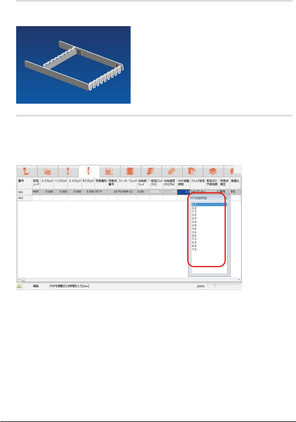 ※ 送りに支障が出る場合は、「MSF 振動時間」を再設定してください。