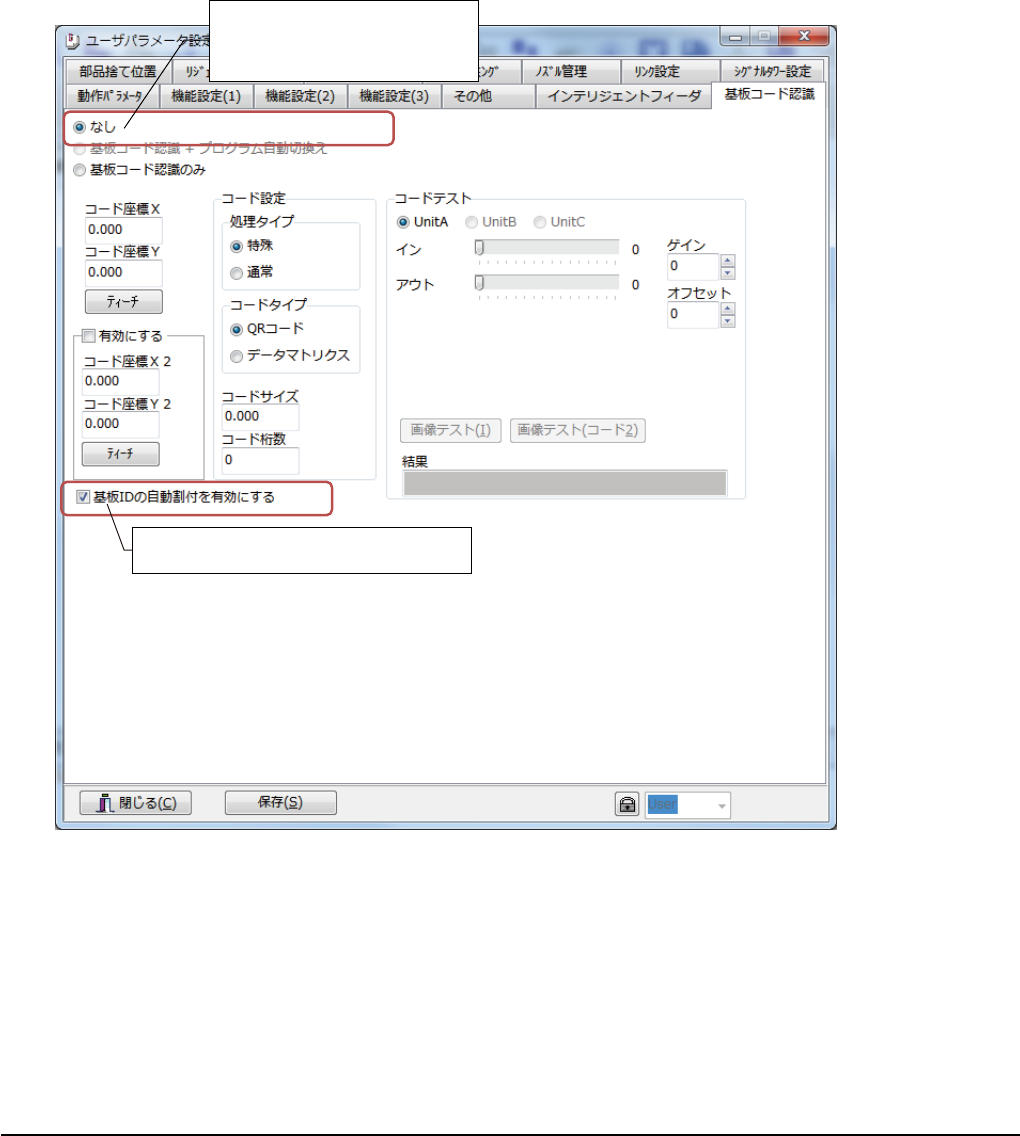 基板コード認識設定で