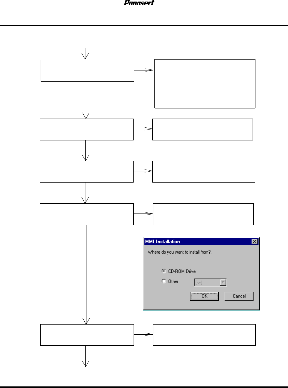 MSR 服务手册 5.4 NT 与 MMI 的安装步骤 D 1 4 S C C - 8 4 - 0 1 0 - A 0 5 . 4 - 1 0 电 源 OFF 将装有 MMI 软 件的 CD 装入 CD 驱动 器 将主 CPU 开关 置于 OFF 。 将装有 MMI 软 件的 CD 装入 MMI 控制 器( P121 )的 CD 驱动 器。 = 提示 = 驱动 器未 连 接 时请连 接 驱动 器。 电 源 ON 在 MMI 启 动时 的…