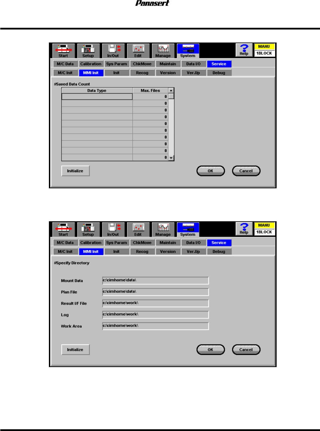 MSR 服务手册 6.1 秘密 画面服务功能 说明(机密事 项) 6.1-15 D14SCC-85-080-A0 循环计时画面 进行循环计时的设定。 MMI 设定菜单画面 访问进行 MMI 设定 的画面。
