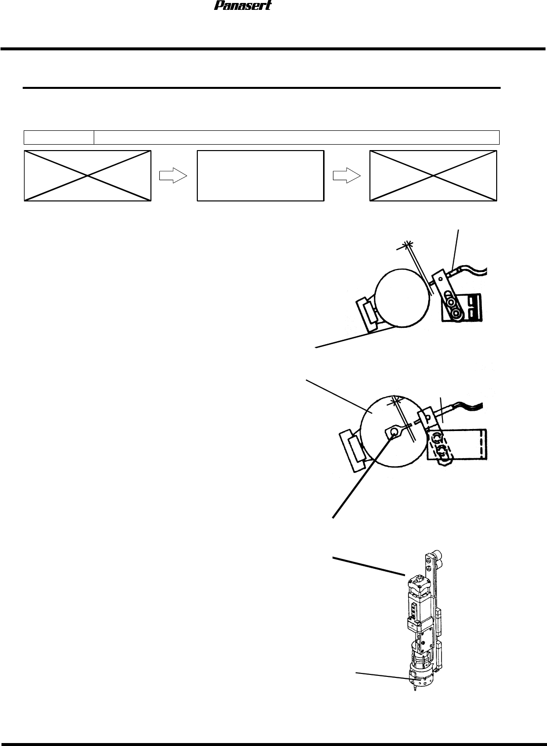 MSR 服务手册 4.1 主体 部 D14SCC-W 0-100-A0 4.1-4 ► 吸着上下时序的调整 吸着上下时序的调整 吸着上下时序的调整 吸着上下时序的调整 1. 打开电源进行返回原点 。 2. 将磁性表架安装于架台 上。 3. 将主操作盘的“ SE RVO MO TOR ”(伺服电机) 置于 OFF 。 4. 旋转手轮,使循环计时 器位于 243 °。 5. 将百分表表针置于贴装 ·吸着上下控制 杆的下面。 6. 转动手轮同…