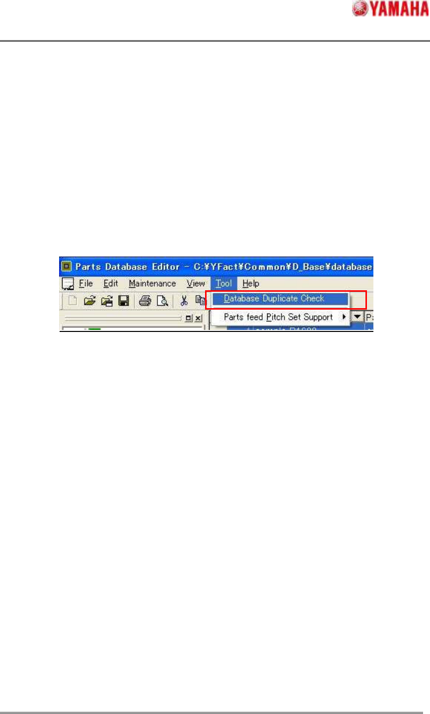 Machine: When “Parts database duplicate check” function is used, Check [Setup] – [Database]