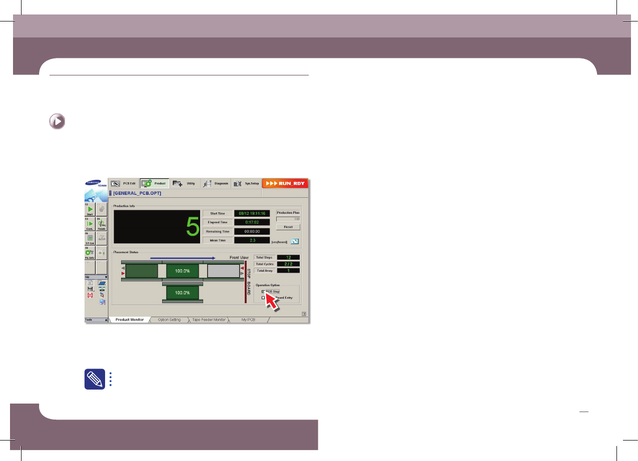 'PCB STOP' 기능을 이용한 생산 완료는 생산 수량을 설정하지 않았거나,