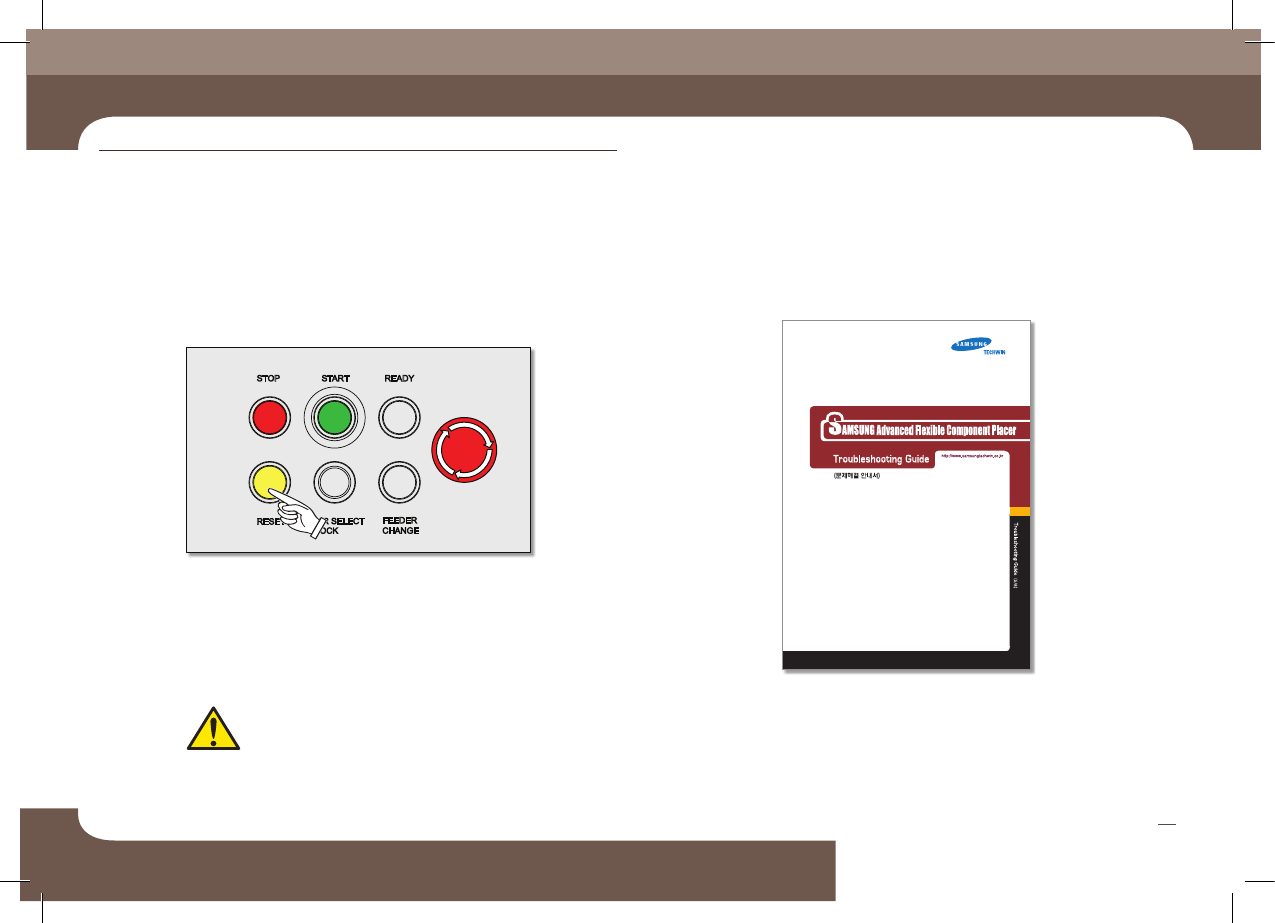 비상 정지 후 생산을 다시 시작할 경우, 반드시 작업자는 PCB상에 비상정지로 인해 떨어진 부품이 없는지 확인하고 있다면 제거하십시오.