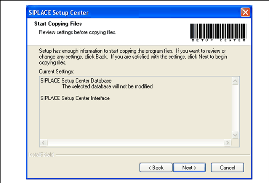 Setup Center Application Installation Individual Setup Types and Next Steps 5.2.3 Setup Type – SIPLACE Setup Center Server 36 Installation Manual SIPLACE Setup Center 8.1 ► Decide whether the values in the database shall…