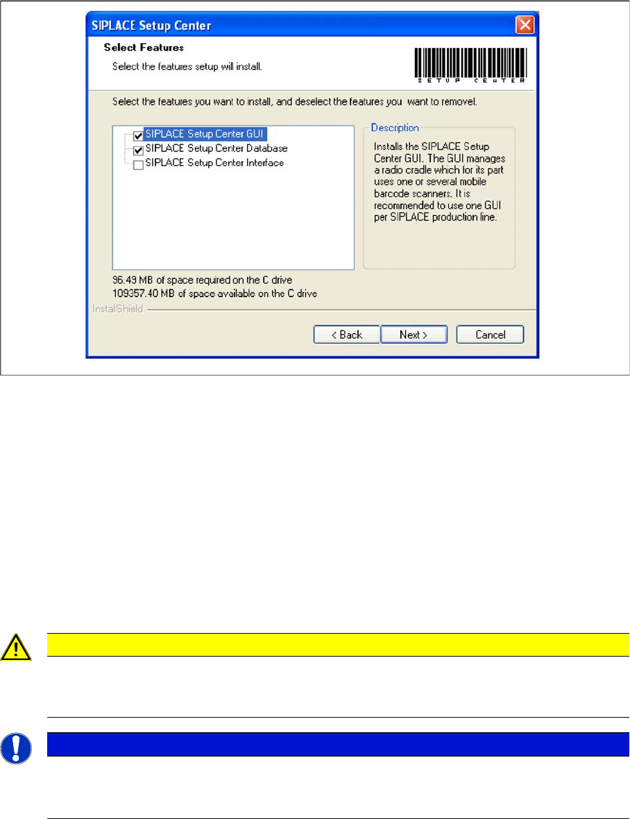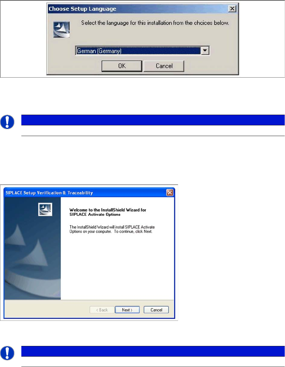 ► This starts the user-controlled installation of SIPLACE Setup Center; you are prompted to select the