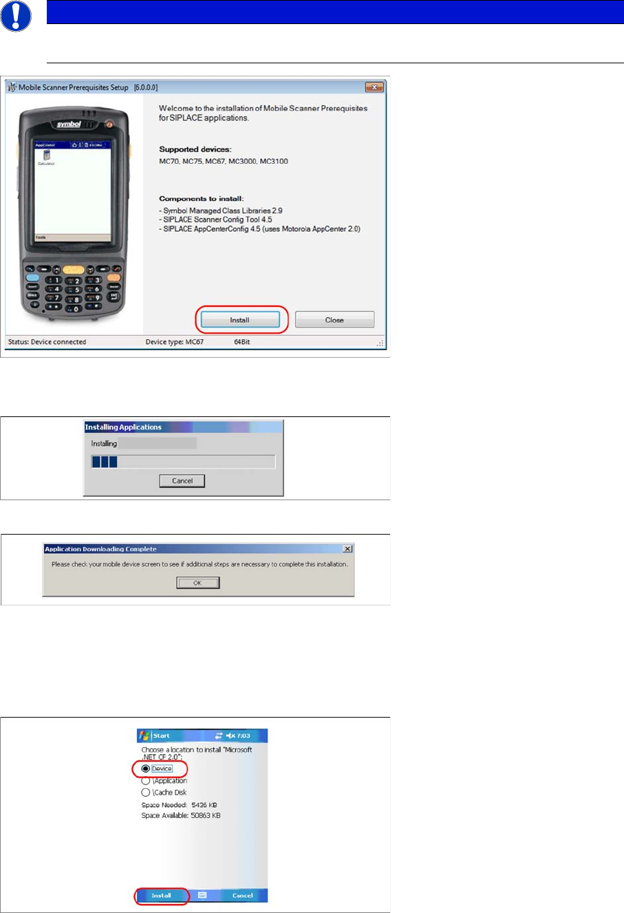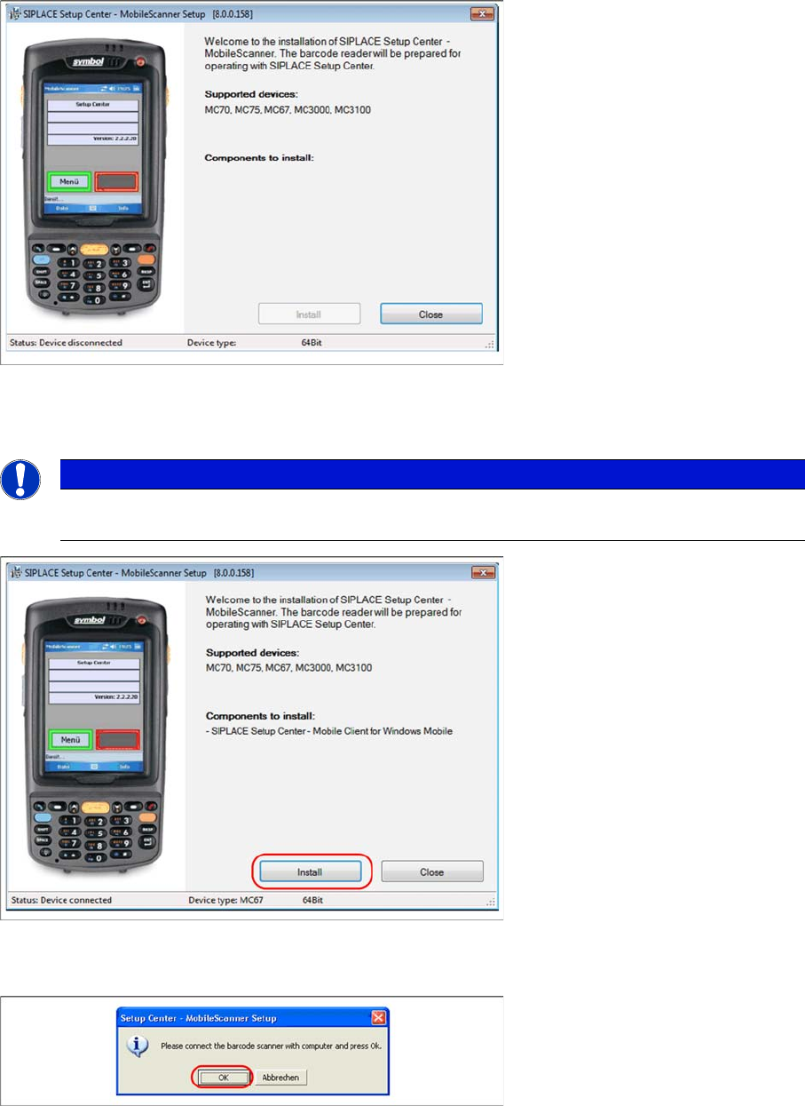 Barcode-Scanner Installation Motorola Scanner 6.3.4 Setup Center Client Installation 64 Installation Manual SIPLACE Setup Center 8.1 ► Press Install to continue with Symbol Managed Class Libraries installation. ► The ins…