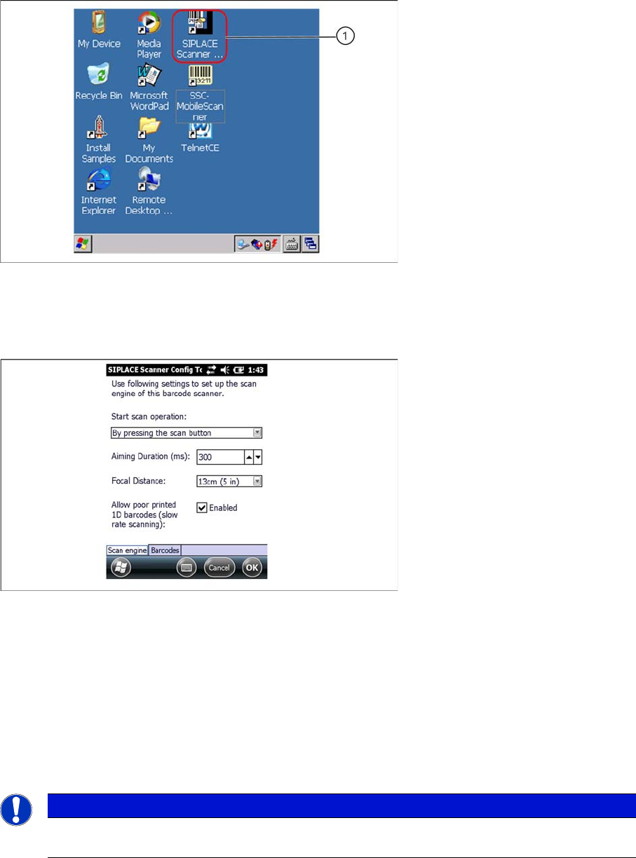 ► Select SIPLACE Scanner Config Tool to continue (select icon (1) for MC70 or icon (2) for MC67 /