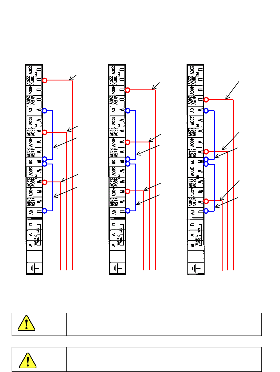安装要领书 9-2 改变电 源电压时,切 换 “ 变压器 ” 的分接头。 图 9-1 显示了 200 V ( 200 V / 220 V / 240 V )的连接。 图 9-2 显示了 400 V 系统( 380 V / 400 V / 415 V )的 连接。 ①②③ : 4020 5719 SW - T F/MTS WI RE ASM2 ④⑤⑥ : 变压器包括电缆 图 9-1 200 V 系列 ⑤ ① ④ ② ③ ⑥ AC200V …