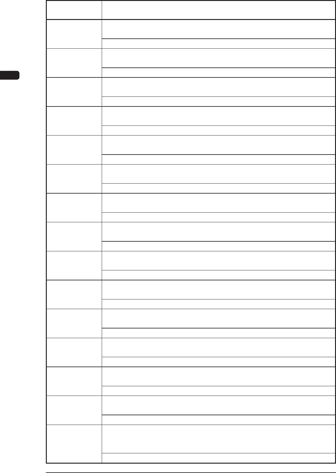 4OM-1604 2-22 第二章 3. 装置情报 装置情报编码 显示区分 A( 装置情报的概要 ) 显示区分 B( 装置情报的详细 ) 80060a 送料器替代动作 送料器未搭载 ----- 800801 最后自动补装动作 元件用完 ----- 800802 最后自动补装动作 元件补给等待 ----- 800803 最后自动补装动作 元件立起检出 ( 传感器 ) ----- 800804 最后自动补装动作 元件厚度异常检出 ( 传感器…