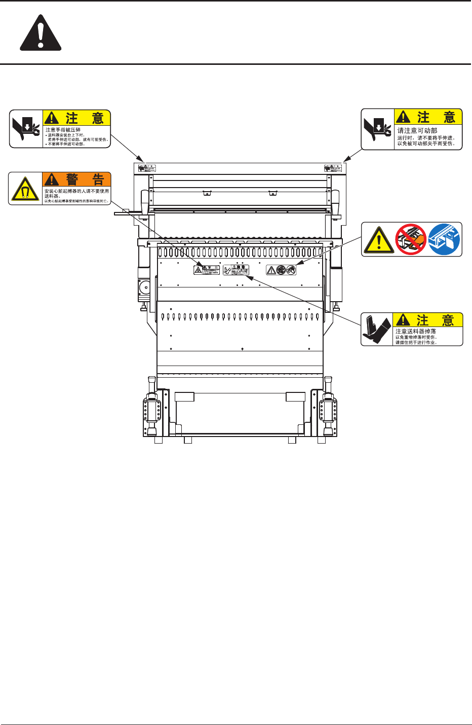 安全 -21 1OM-1604 101 1-002 4. 本装置的警告标签 送料器批量更换推车侧面图 A B (4) (14) 观察图 A (16) 观察图 B F1X8 为了使用上的安全起见
