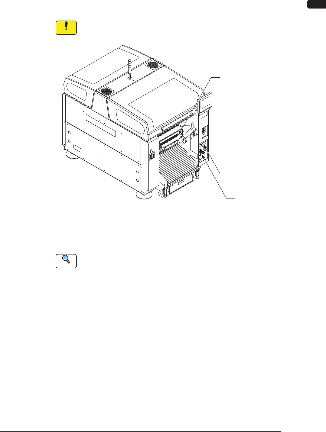 4OM-1604 1-16 第一章 3. 维护保养部位 安装头部 XY横梁部 吸嘴储料器部 推车设置部 送料器安装台驱动部 吸嘴储料器部 元件识别照相机部 线路板搬送部 切割器部 线路板搬送部 F4A7 1002-001
