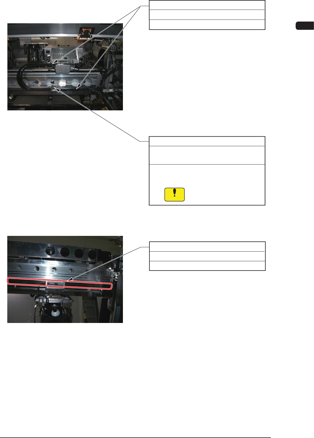 4OM-1604 1-40 第一章 3. 维护保养部位 Y轴电缆固定部位(2处) 每六个月 点检 所要时间:1分钟 请目视点检是否有龟裂等异常状况。 Y轴电缆侧面 每六个月 清扫、注油 所要时间:3分钟 (BARRIERTA IEL/V) (1) 请用油棉纱擦去原有的润滑油。 (2) 请用手或刷子涂刷新润滑油。 请注意不要残留纱头。 Y轴直线标尺 污垢严重时,请用浸过醇类的棉纱进行清扫。 每六个月 清扫 所要时间:5分钟 F4A31 1…