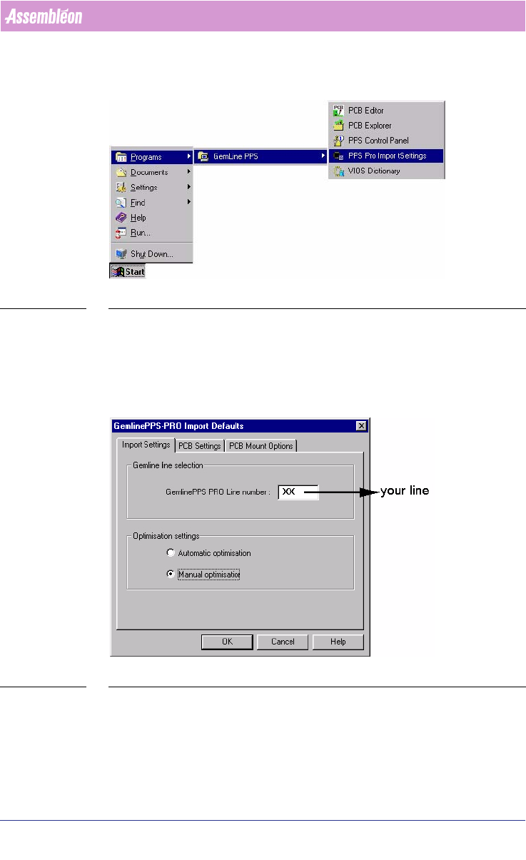 Default settings can by made by screen 78, GemLine PPS-Pro Import Default