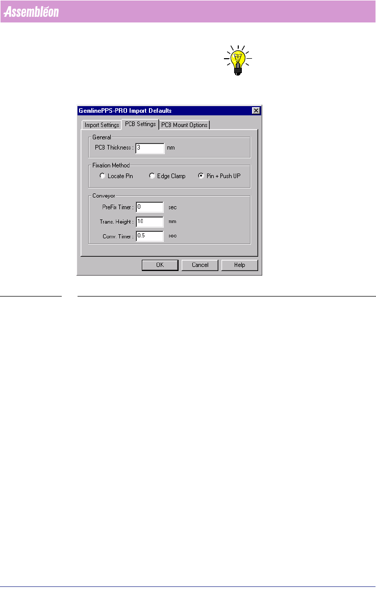 The Fixation Method of the PCB has to be set. Default fixation method is Pin