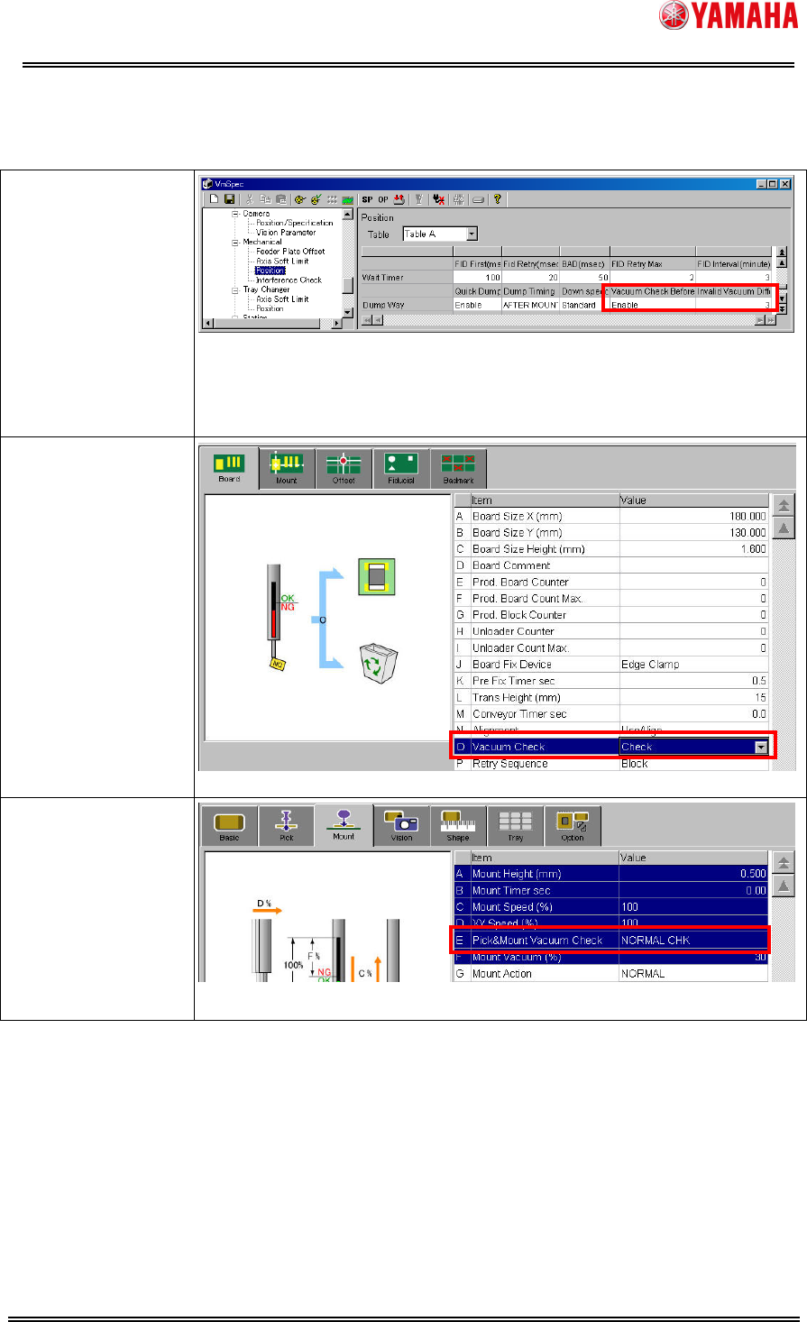 SMT Software Engi neering Group IM Operati ons Y AMAHA MOTOR CO., L TD. MDOC-SOFT501 52 9/10 3.5.3 Invalid vacuum d ifferenc e W hen using part s of which vacuum le v el does no t rise while pickup parts , or when heads …
