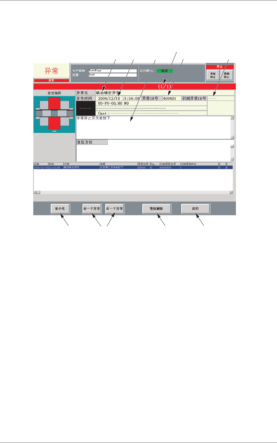 按下该按钮,解除警音和异常显示并返回到原来界面。