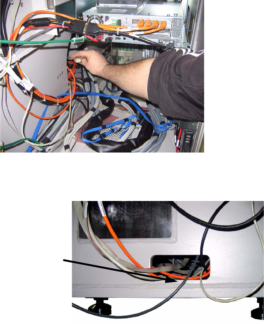 : Run the cable through the hole in the machine frame beneath the docking unit up to the back