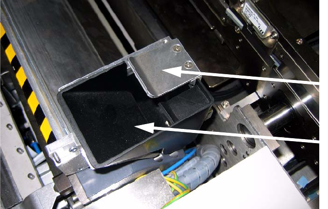 : Entfernen Sie den Abwurfbehälter und das Abdeckblech.