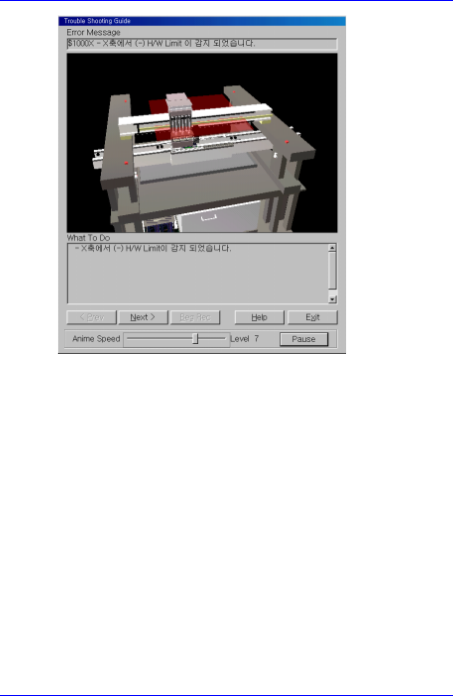 Appendix B 3D T r ouble Shooting Guide B-5 Figur e B-5. "Mark3TSG" scr een Check the error situation and click on the [N ext>] button to move to the next step. 4. The screen changes to the next step as in Fi…