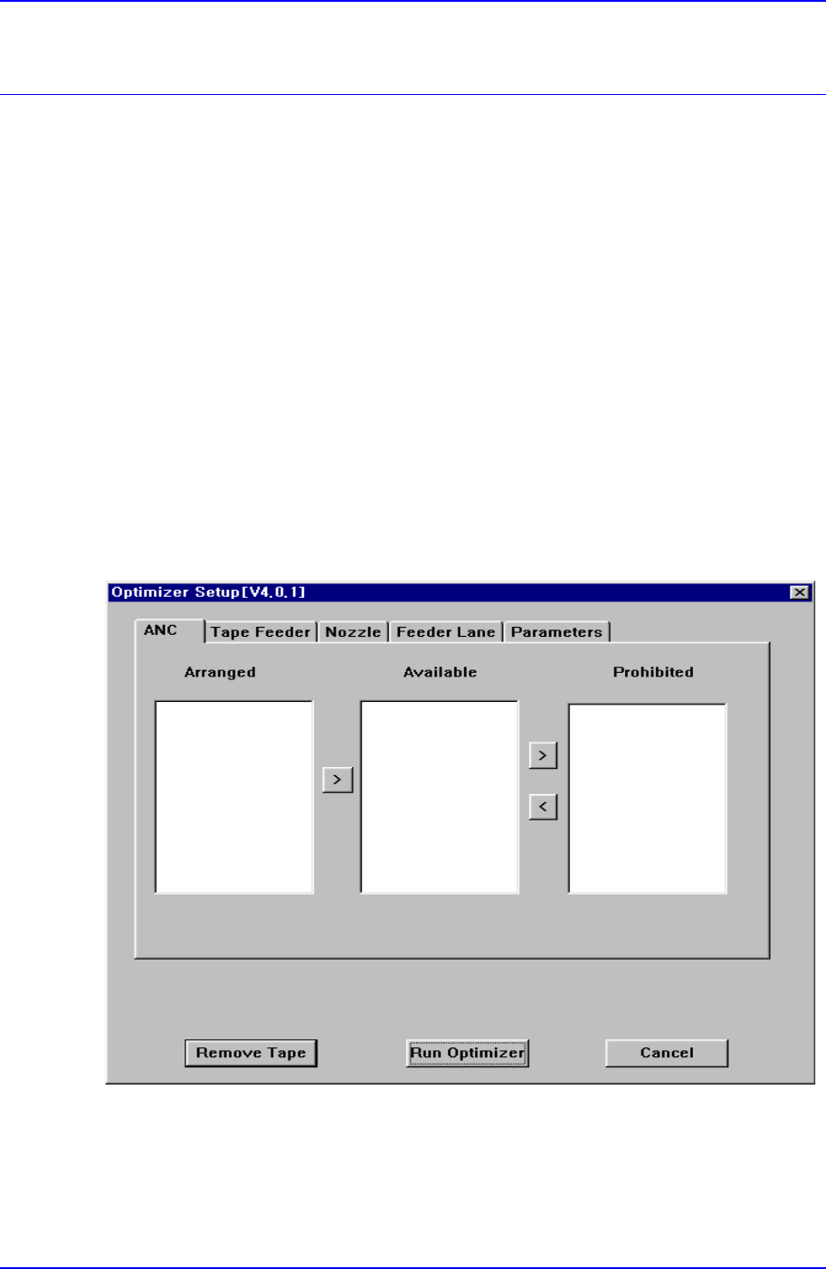 Samsung Component Placer CP-45F(V)/FS Operations Manual A-2 Displays the ANCs already arranged in the feed er lane of the "PCB Setup" dialog box . The Optimizer does not change the arrangeme nt position of the …