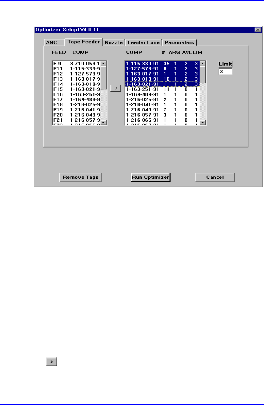 Figure A-2. "Optimizer Setup: Tape Feeder" dialog box
